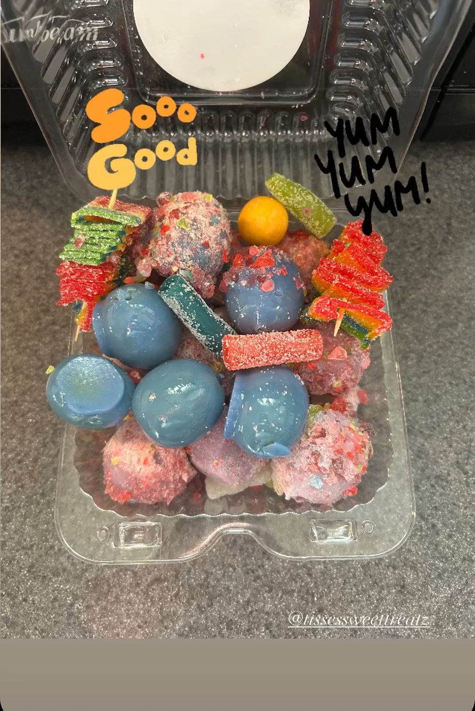 I was Facebook and this small business was on my for you page I clicked link and ordered candy grapes candy apples and 2 drinks from this young lady . She called me and said I've never shipped out of state before I will refund you your money . she sent the money back I placed the order again I told her I will wait 2 weeks for you to figure out how to ship my items and she called and said dry ice is what she researched . I recieved my items and they were delicious .